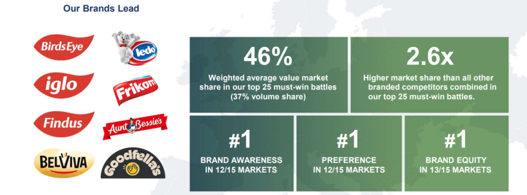 - Společnost vlastní zavedené značky (např. Birds Eye, Findus, iglo), které mají dlouhodobou důvěru zákazníků